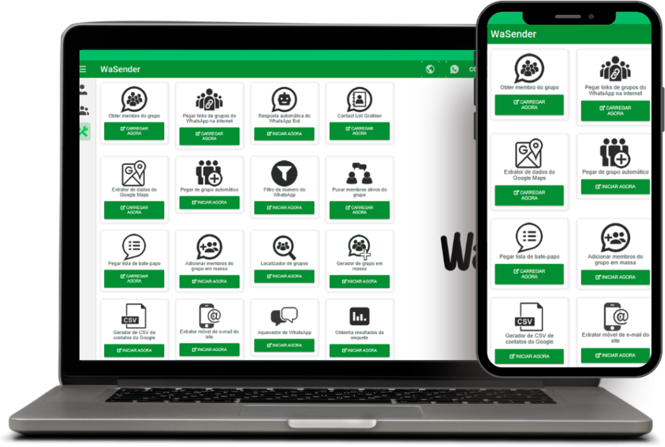 Melhor solução de envios em massa para Whatsapp da Internet. O WASENDER é um avançado programa que permite o usuário enviar milhares de mensagens de forma automática. Uma solução definitiva de mensagens do WhatsApp com suporte ao WhatsApp Beta e bot avançado para respostas automáticas e filtro rápido. WASENDER 100% seguro e confiável. Comece hoje mesmo a divulgar e vender mais com a ferramenta que mais ajuda o comércio em geral a divulgar e vender, com ele você vai facilmente chegar de forma mais rápida e direta ao seu futuro cliente, tenha já o seu WASENDER